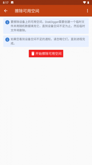 3、使用“擦拭可用空间”选项擦除设备上剩余的可用空间,把已删除的文件取消恢复。