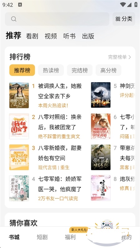 为了让新手能精准的挑选到感兴趣的书本,可以在书本排行榜上挑选,每个书本评分都较高;