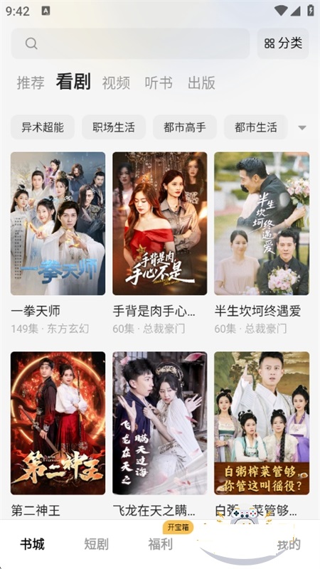软件内的排版非常的清爽直观,并将书本都按照题材来分类,轻松就能找到有趣的书本题材;