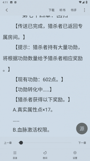 4、离线下载和多设备同步:夜猫小说正版支持离线下载功能,将喜欢的小说下载到本地,在没有网络的情况下进行阅读。支持多设备同步阅读进度,在不同设备间无缝切换,继续阅读。