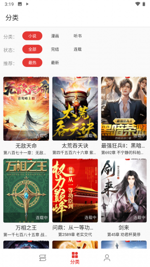 2、分类筛选,通过分类页面按类型快速找到自己喜欢的小说,提升阅读效率。