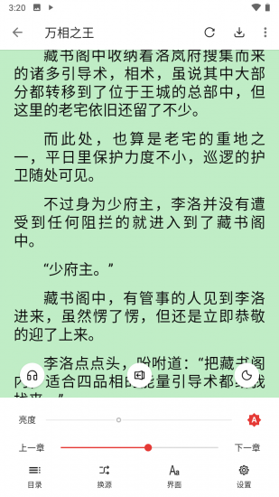 3、个性化的阅读设置,让根据自己的习惯调整字号、字体、亮度和背景色,提供了更为舒适的阅读体验。
