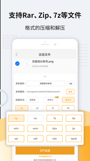 解压缩zip官方版支持各种不同文件格式的压缩和解压,快速的将rar,zip,7z等各种格式的压缩文件进行解压,还能够将不同格式的文件制作成压缩包。