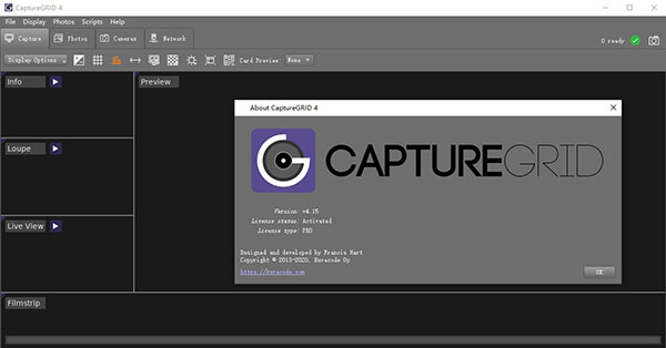 CaptureGRID又名摄像机控制,它是一款非常优秀的摄像机控制软件,能够对摄像机进行设置、触发、实时取景、照片下载、文件名管理等,大大的提高了效率。此外,还可以同时控制多台相机哦,非常强大。并且,该软件使用有线USB连接,通过我们自定义的PTP引擎直接与摄像机通信了。同时,用户可以将管理分配给每张照片的文件名,并可以自动将它们组织到子文件夹中,轻松配置此机制,更好的处理所需的文件命名方案。值得一提的是,今天我给大家带来的是“CaptureGRID破解版”,该版本是经过大神精心修改过的,可以免费使用哦。不仅如此,这款软件提供了多种监视和控制摄像机的方式,满足你的所有需求哦。觉得这款软件不错的话,心动不如行动,快来下载体验吧!