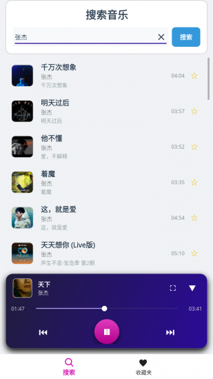 5、收藏喜欢的音乐:用户可以将喜欢的音乐添加到收藏夹,随时播放全部或选择其中几首。