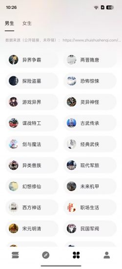 1、分类页面提供了多种小说题材,几乎覆盖了所有你可能感兴趣的类型。无论你偏爱科幻、言情、悬疑还是历史等类型,只需要简单选择相应的分类,就能轻松找到自己喜欢的书籍。