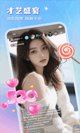 3、实时直播:用户可以随时开启直播,展示自己的才艺,与观众互动,积累粉丝;