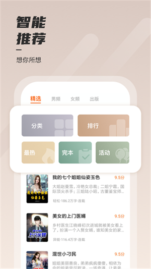 1、精选推荐:为用户精心推荐适合的小说,省去了翻阅无数书籍的烦恼;