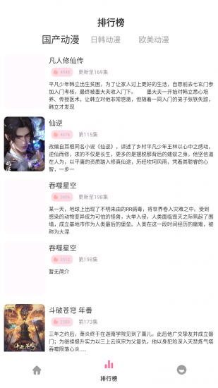 3、操作便捷:界面设计简洁明了,分类细致,用户可以通过搜索功能快速找到自己想要观看的动漫作品。同时,该应用还设置了日榜、周榜、月榜等多种榜单,方便用户了解热门的动漫番剧。