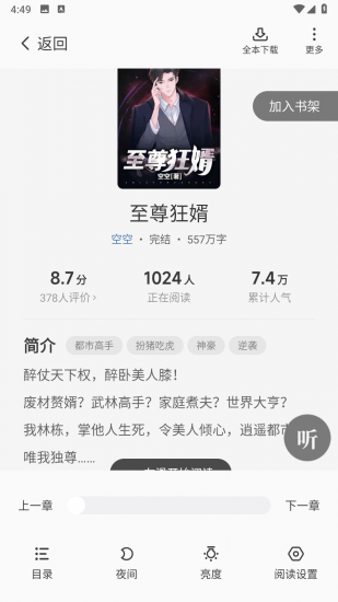 3、多种阅读模式:支持普通阅读、夜间模式、护眼模式等,用户可根据需求自由切换,提升阅读舒适度;