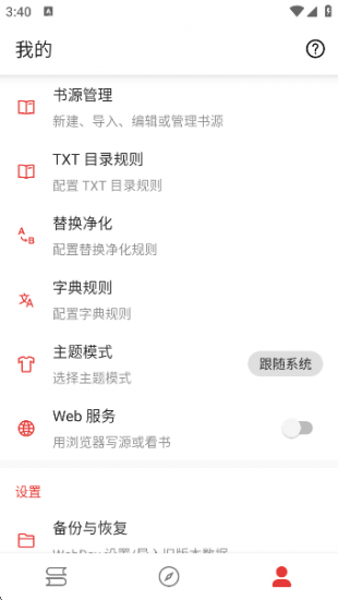 1、海量书源:整合众多书源,涵盖各种类型小说,如玄幻、言情、历史等,还可自由切换书源;