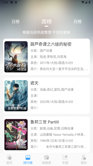 4、热门排行榜功能对各类视频进行人气排序,帮助用户快速发现高质量和高人气的动漫作品。