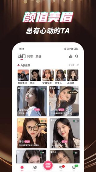 精聊视频app安卓版是一款很火热的聊天交友软件,喜欢社交喜欢刷视频的朋友一定会喜欢,是可以为用户提供线上零距离视频交友社交平台,用户可以在里面尽情交友聊天,玩法非常多样。软件内汇集了超多的颜值用户,有着很详细的细致分类,他们的个人简介也非常精彩,可以尽情展示掌握,让你可以在线遇见心动的那个TA,轻松找到属于自己的另一半。想要快速扩展你的朋友圈,你的动态一定要漂亮,这样才会有人搭讪,能够实时的进行脱单恋爱,遇到喜欢的可以直接搭讪聊天互动哦!用户可以在精聊视频app最新版随时展示真实的自我,便于可以更好的进行社交。熟悉起来以后还可以视频聊天交友,与好友进行面对面的聊天,实时的进行真实的社交,还有机会邂逅自己的浪漫爱情哦!