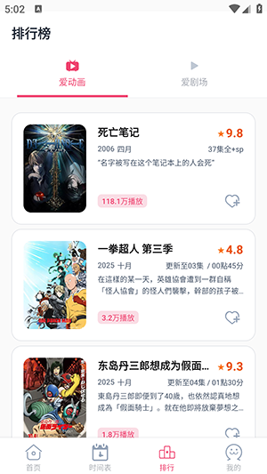 3、在排行榜中能够对受欢迎的动漫作品进行挑选,观看更火爆的动漫;