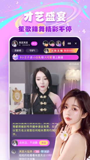 3、【玩转直播 告别孤单】直播24小时不间断,pk排位赛,活动不停歇,一键关注你喜爱的主播;