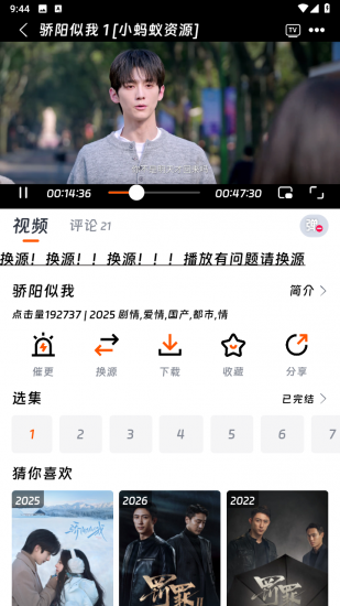 4、播放界面设计清晰,调节清晰度、切换剧集等常用控制按钮都放置在触手可及的位置。