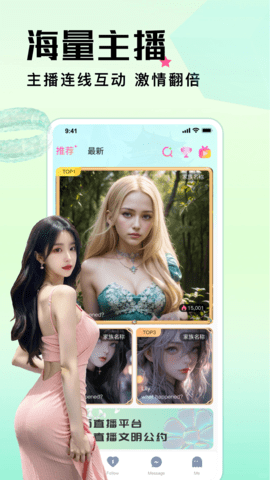 潮色直播免费版是一款特别多元的手机视频直播软件,里面有着多元的直播内容和多元直播玩法,因此受到了很多人的喜爱,直播花样众多,主播在直播间等候着你的到来。这里的直播多种多样,都有详细的标签分类,每个人爱看的直播都能自动为你推送,户外直播、游戏直播、美食直播、舞蹈直播、音乐直播等等应有尽有,你们可以尽情享受,还可以搜索感兴趣的直播哦!这里还有大量的深夜高福利主播和你一起来这里感受激情互动,还有超多酷炫玩法等你来体验,在直播间和和主播尽情互动,一起聊天,还有丰富多彩的直播节目进行直播,你还能与主播进行实时的互动,还有可能会遇到让你心动的主播哦!潮色直播app安卓版都是很有品质的高福利直播等你体验,全程看直播视频都是免费的。