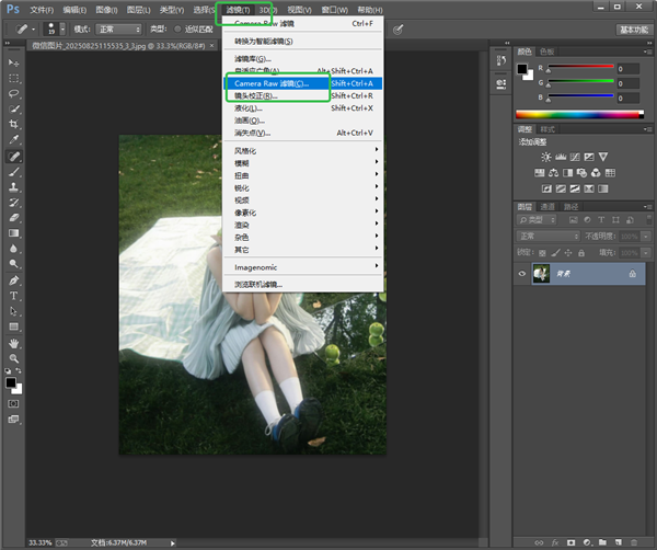 2、点击【滤镜】,选择【Camera Raw 滤镜】。