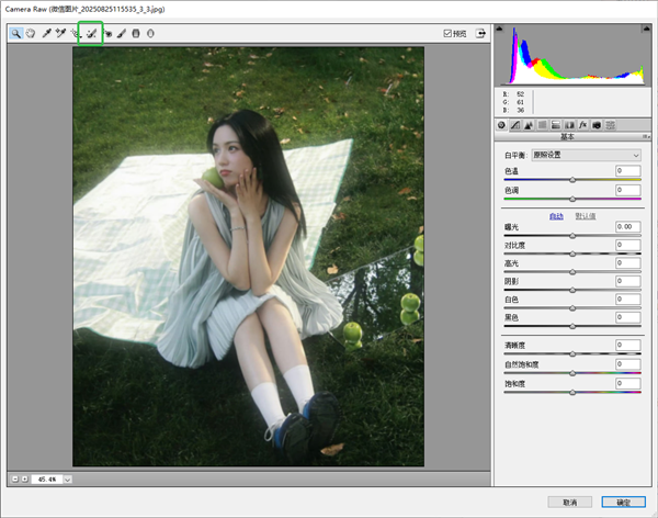3、自动识别图像中合焦的区域并建立选区,适合人像摄影等需要突出主体的后期处理。