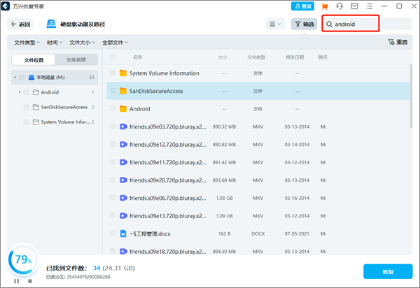 此外,您还可以直接在右上角的框中搜索关键字。然后万兴恢复专家将识别所有引用关键字的文件。