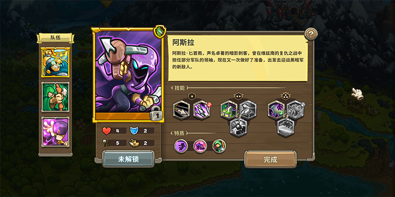 前期开荒:阿斯拉(输出)+ 兽人刀客(反击)+ 圣骑士(治疗),兼顾伤害与生存。