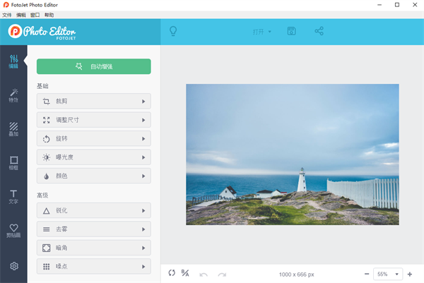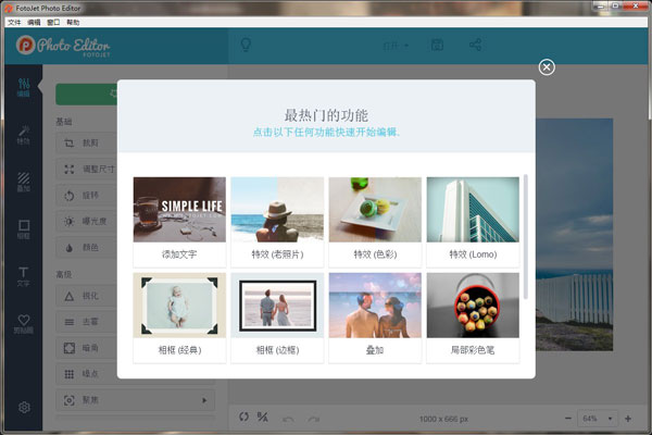FotoJet Photo Editor中文版是一款非常给力的图片编辑神器,该软件提供了叠加效果、文字样式、相框、剪贴画素材等等,用户可以一键进行引用,让你的图片变得更加生动。此外, 还可以根据你的需求对图片进行剪裁、调整尺寸、旋转等等,想怎么调整就怎么调整,满足你的需求哦。并且,FotoJet Photo Editor官方版还添加了海量的滤镜,比如“黑白、褐色、复古、Lomo、老照片等等,十分方便。同时,也可以一键恢复原始效果,这样要是不是自己想要的效果,就可以不白费功夫了。不仅如此,也能够给图片添加文字哦,没有任何拘束。除此之外,可以批量处理图片,这样大大的提高了效率还可以节省不必要的麻烦。觉得这款软件不错的话,可以前来试一试了!