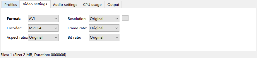 4、在界面下方还可以找到“Resolution”、“Encoder”、“Frame rate”、“Aspect ratio”以及“Bit rate”选项,根据自己的需要点击几个选项后面的下拉按钮对其设置。