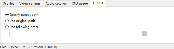 5、然后在界面下方找到“Output”选项,该选项表示输出目录的意思,该选项下方有三个选项,从上往下分别表示特定输出目录、原文件夹、自定义文件夹的意思,根据自己的需要进行选择即可;如果选择自定义文件夹,则还要点击下方的三个小点按钮设置输出目录。