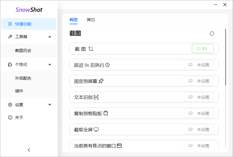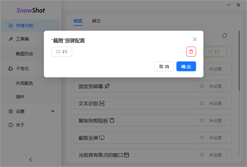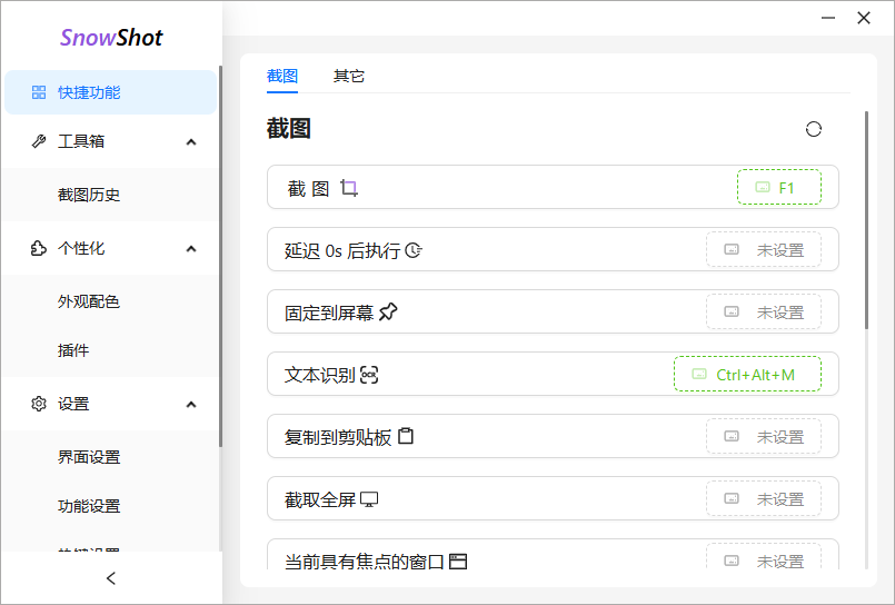 2、点击功能的右侧按钮,可以自定义配置功能的全局快捷键,以便快速唤起应用功能。