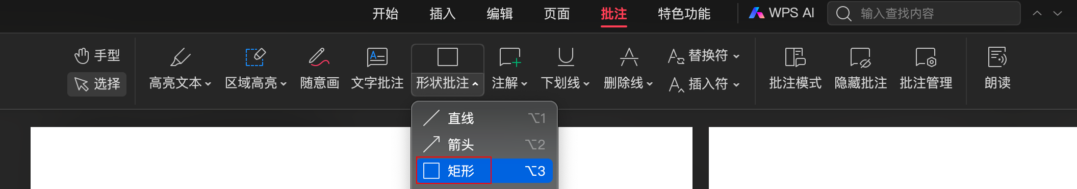 使用你喜欢的软件添加矩形批注,如下是WPS的矩形批注工具位置。