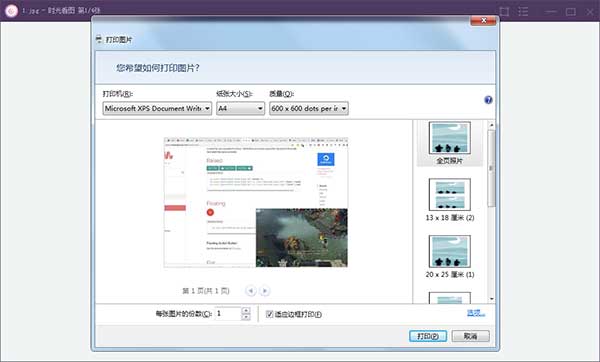 16、可以将当前浏览的图片进行打印,用户需要对打印参数进行设置,完成后点击打印。