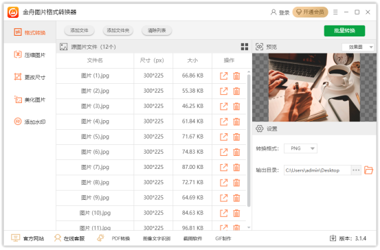 内置图片转换器、支持图片批量转换、轻松一键转换。