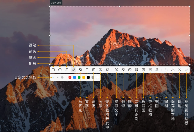 3、截图功能丰富,画笔、箭头、添加文字、翻译、解释