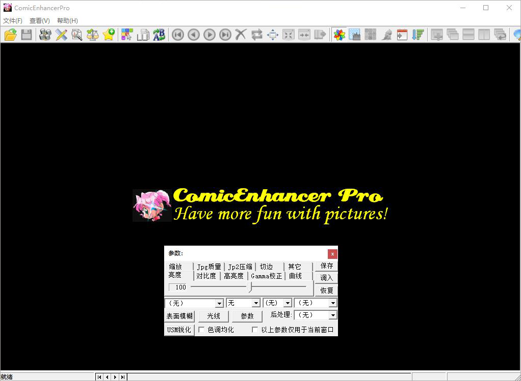 ComicEnhancer Pro中文绿色版是一款非常给力的图像处理软件,该软件拥有旋转调整图像大小、锐化软化、真彩色转黑白、调整JPEG图像压缩比等等多种功能,可以处理图像的问题。此外,用户能够一键批量添加图片到软件中进行编辑,大大的提高了效率还可以节省不必要的麻烦。并且,还有实时预览图片,查看图片在编辑处理后的效果。而我今天给大家带来的是“ComicEnhancer Pro免安装版”,该版本是免安装的,直接打开即可使用哦。不仅如此,支持JPG、UFO、GIF、PNG、BMP、TIFF等等格式,无需为转码而忧愁了。除此之外,这款软件还增加了自定义工具栏功能,这样就可以更快更方便的处理图像了。感兴趣的小伙伴们还在等什么,心动不如行动,快来下载体验吧!