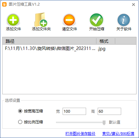 1、打开该软件,添加文件或者文件夹,选择好需要压缩的图片,
