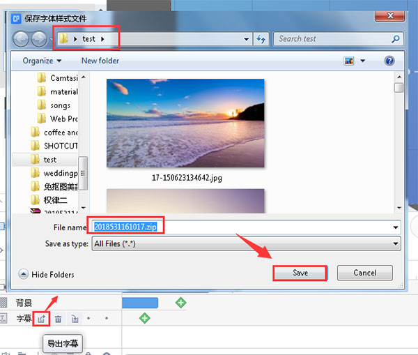 3、导出字幕(导出字幕可以方便以后重复使用该字幕)