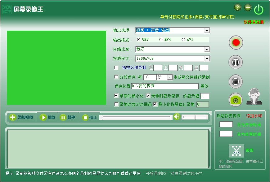 屏幕录像王官方版是一款非常强大的屏幕录制软件,该软件设有视频尺寸、录制区域、分段保存、输出位置、显示时间码等等多种功能,可以轻松处理各种录制方面的问题。此外,用户也可以一键裁剪视频,这样就可以一键截取你想要的部分了。并且,支持WMV、MP4、avi等多种视频格式,无需担心不兼容的情况发生了。同时,屏幕录像王中文版还支持画中画,如果你想在录制的过程中想加一些自己的介绍在里面的话,也是完全没问题的。不仅如此,这款软件还内置了剪切功能,可以直接剪切视频文件。除此之外,提供了视频拼接功能,让用户可以轻松的进行多段视频拼接合成了,十分方便。有需要这款软件的朋友还在等什么,心动不如行动,快来下载体验吧!