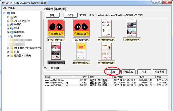 3、选中目标文件,点击下面的“添加”按钮,将图片添加到处理列表中(支持在不同文件目录下)