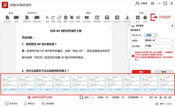 闪电GIF制作软件官方版是一款非常实用的GIF制作软件,该软件提供了旋转,减少帧数、移除重复、、视频图片制作等等各种功能于一体,一个软件全部搞定,免去了下载多个软件的苦恼。此外,用户可以调整屏幕大小,想怎么调整就怎么调整,满足不同人群的需求。并且,支持MP4、AVI、MKV等格式,无需担心不兼容的情况发生哦。同时,闪电GIF制作软件中文版提供了多种制作GIF效果,给你带来不一样的体验感!不仅如此,这款软件还有实时预览功能,这样就可以提前查看效果图了,轻松知道是不是自己想要的结果了。除此之外,图像也是质量极高的,画质清晰,无需担心出现模糊的情况发生哦。有需要这款软件的小伙伴们还在等什么,心动不如行动,快来下载体验吧!