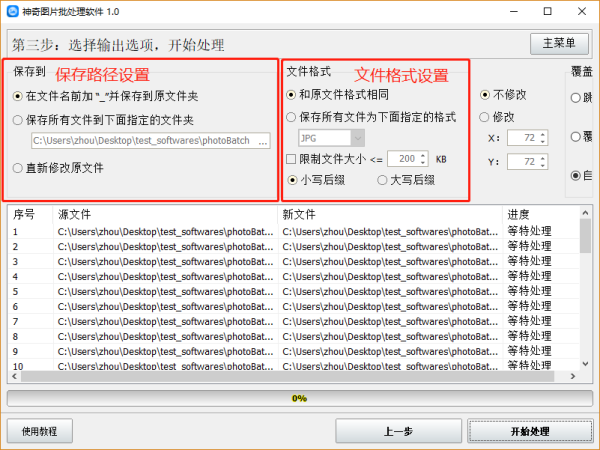 全部设置完毕后,点击“开始处理”按钮,即可完成!